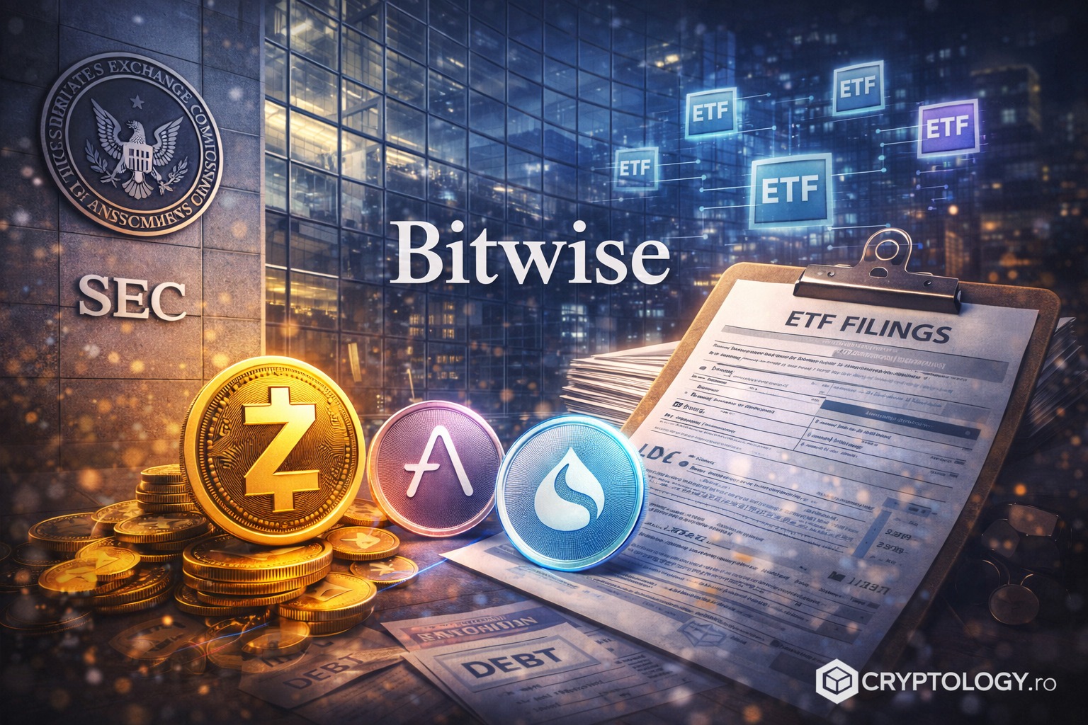 Pe 30 decembrie 2025, cu doar câteva zile înainte de Revelion, Bitwise Asset Management a făcut o mișcare pe care mulți o așteptau de ceva vreme. Compania a trimis la Comisia pentru Valori Mobiliare din SUA un pachet de 11 cereri pentru fonduri de tip ETF care să urmărească performanța unor criptomonede mai puțin cunoscute publicului larg.