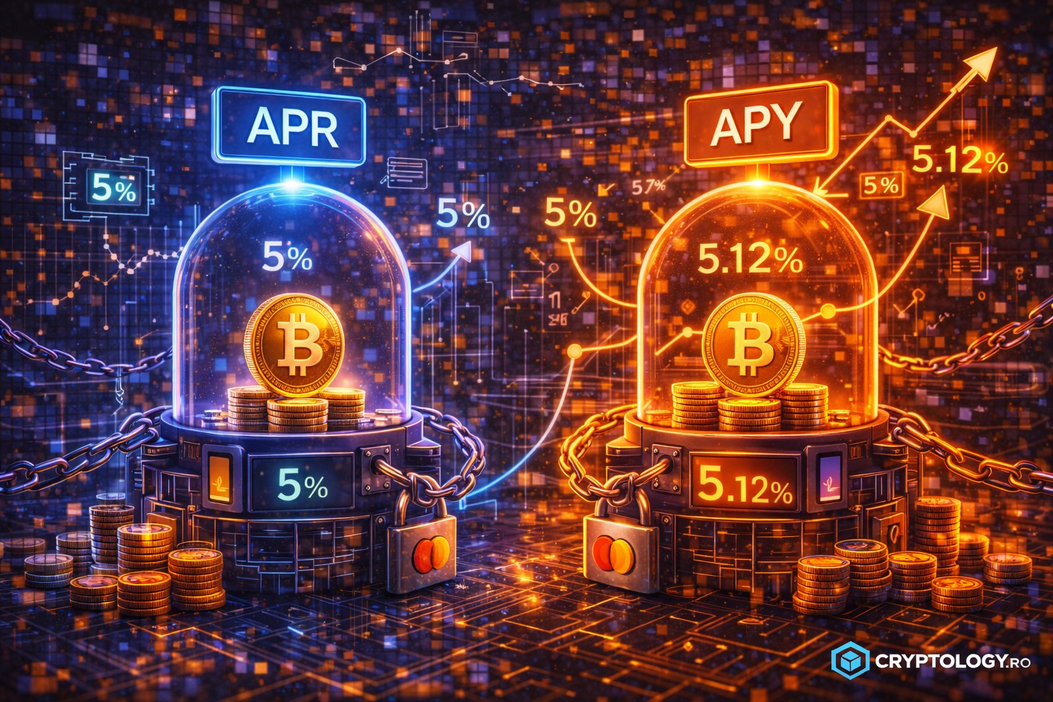Oricine a petrecut măcar câteva ore pe o platformă DeFi a dat peste două acronime care par aproape identice, dar care ascund diferențe deloc neglijabile. APR și APY apar în dreptul fiecărui pool de lichiditate, pe fiecare pagină de staking, în termenii fiecărui cont de economii cripto. Și totuși, mulți investitori le confundă între ele sau, și mai rău, nici nu se opresc asupra lor când iau decizii cu banii.