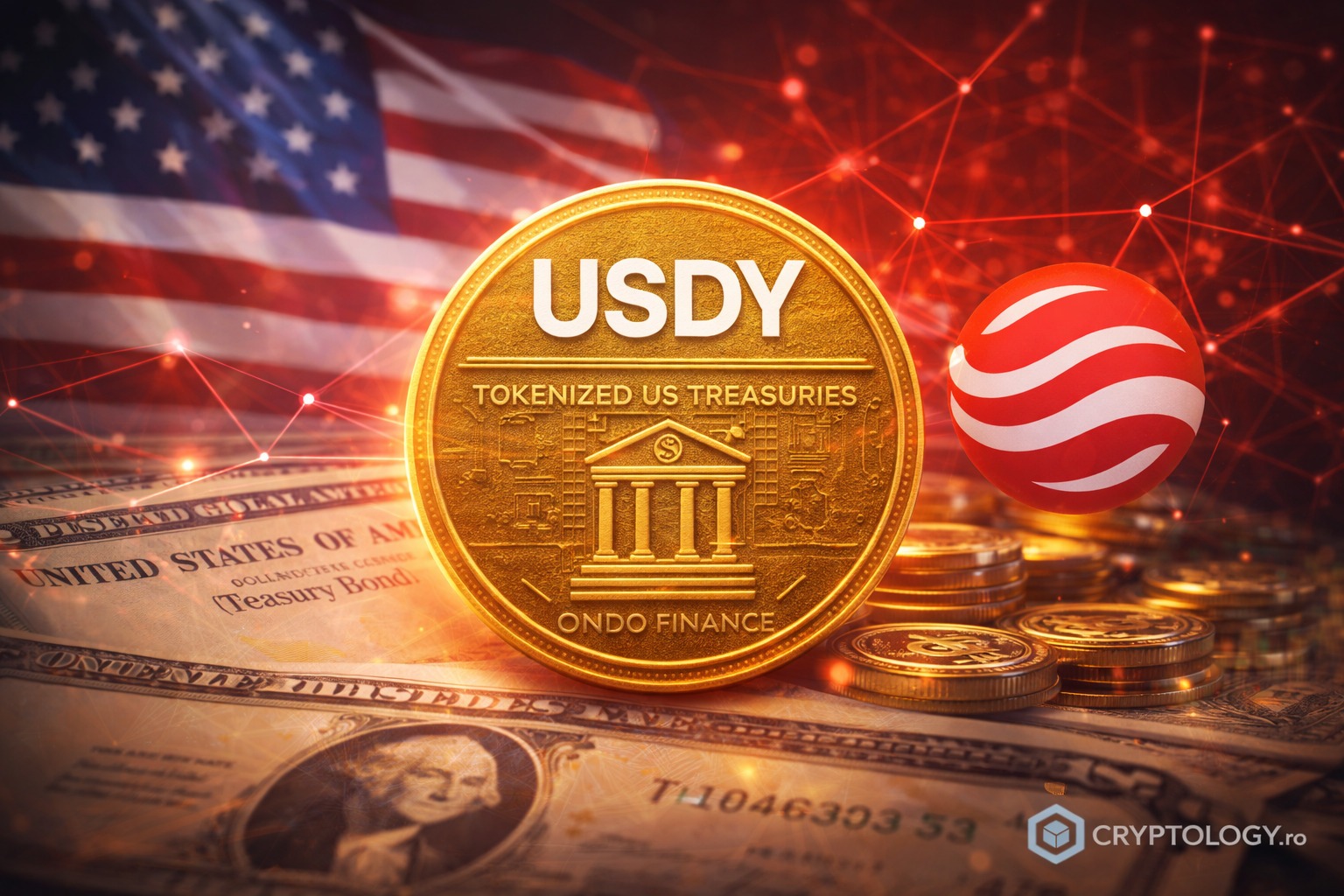 Tokenizarea înseamnă crearea unei reprezentări digitale a unui activ existent. În cazul USDY, activele din spate sunt obligațiuni pe termen scurt emise de Trezoreria SUA și instrumente monetare echivalente. Tokenul nu este obligațiunea propriu-zisă, ci un drept digital asupra valorii și randamentelor generate de aceste instrumente.